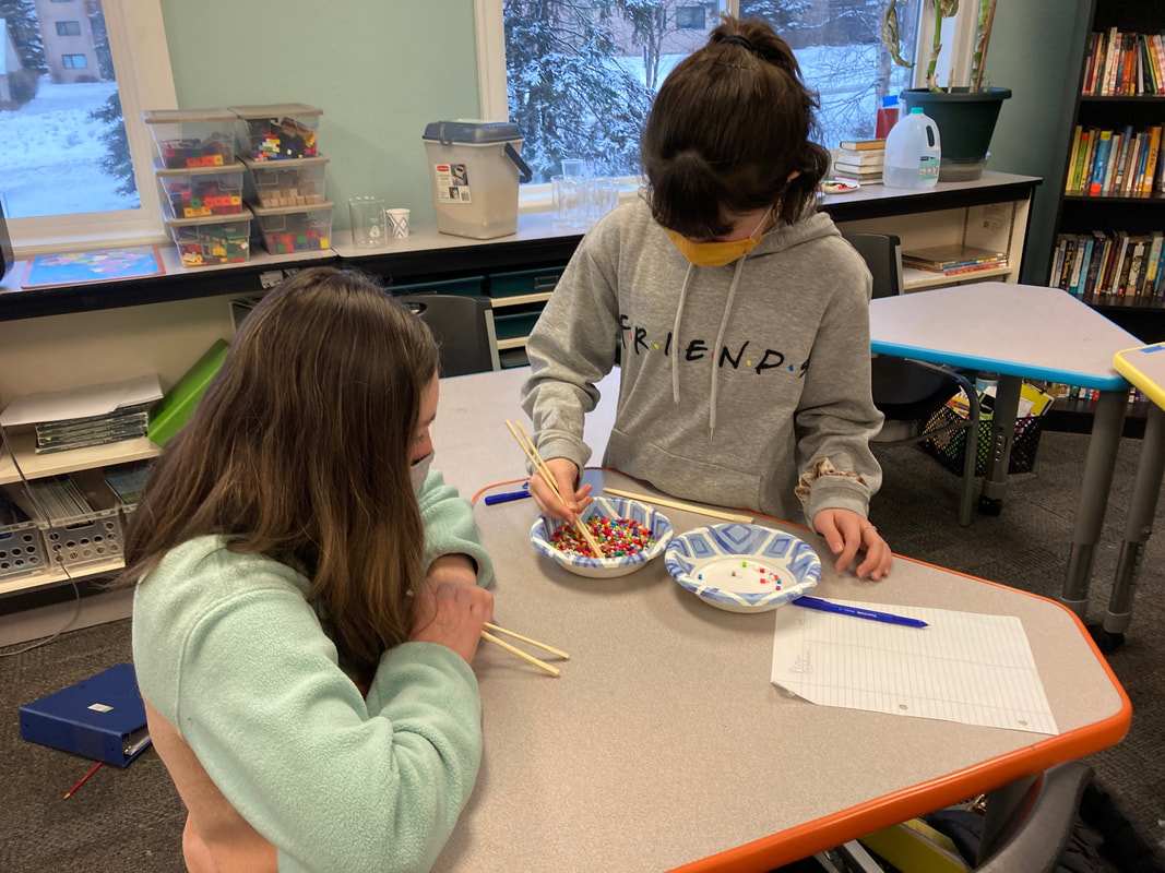 My students walked through our classroom door draped with streamers and were immediately excited to be in school. The morning started out with math. I teach Pre-Algebra, which has students from grades 5-8, so I wanted to do something special for this blended group. We put a spin on some classic “Minute To Win It” games. In small groups, the students rotated between four stations. From picking beads up with chopsticks; to hitting ping pong balls off clipboards; to blindfolded cotton ball pickup with spoons; to throwing balls at a target, the games required concentration and teamwork. The students enjoyed each round, playing for 100 seconds instead of only a minute.