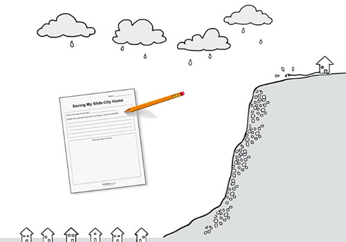 Our lesson this week, from the Mystery Science curriculum presented students with an imaginary situation in which they have won a new home: in the town of Slide City. The home is located very near the location of a previous landslide that occurred due to several factors: a very steep mountain near the town; a lot of heavy rainfall; and a homeowner at the top of the mountain who had heavily watered his land.