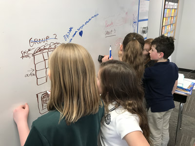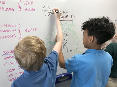 Students worked their way through learning about rays, angles, points, and everything between (no irony intended). Fourth grade math used geo-boards (plastic squares with pegs that allow rubber bands to be mounted on them) to experiment with bisecting, perpendicular, and parallel lines.