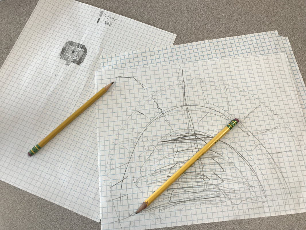In the pictures below, students try to put their ideas on paper to illustrate their ideas for their fellow students.