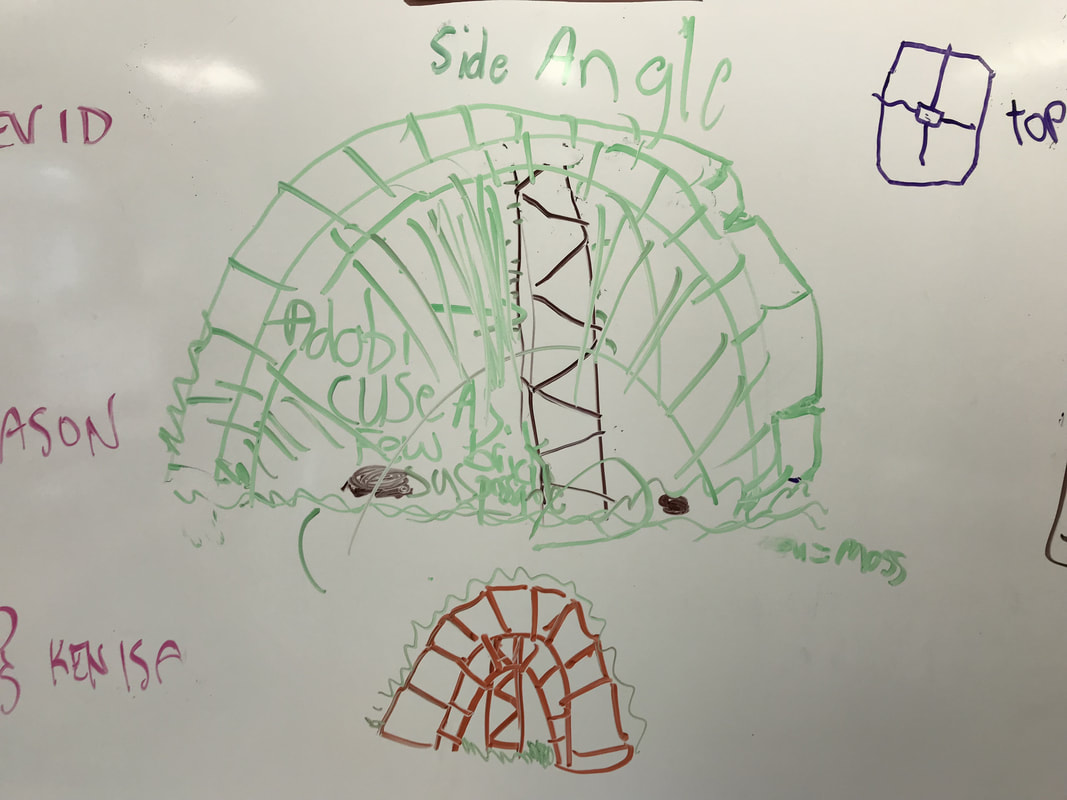 The three teams worked to come up with the best combination of elements that they could come up with, using research they’d done on the adobe, thatch, igloo and sod-based dwellings of Native Americans and early settlers.