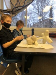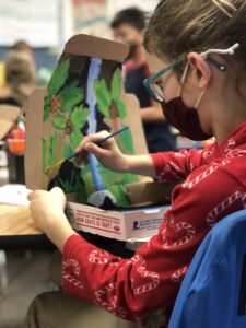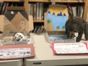 Upon revisiting our PBL, students were tasked with completing building their creature’s structure, forming it in clay, and painting it. In all of these steps, students were asked to ensure that their creature would easily show some of its adaptations. Once completed, they worked to create a background that depicted which planet they chose; Rainia, Mountainia, Desertia, or Oceania. Lastly, they had to create a museum card naming their creature (with a combination name from the animals whose adaptations it has), describing its environment, and explaining the adaptations that help it survive and thrive. This past week, we put our creatures on exhibit to an audience of all staff and all students at PNA after explaining what our task was. Staff and students had a comment box and praised the fourth grades with compliments ranging from “It’s clear to see what hard work was put into this,” “The features on the Armadilpouse were so well done,” to “The Henlin is the creature that I think is most realistic and would see in a blockbuster movie.” The audience received the creations wonderfully and the students completed this challenging project with a smile.