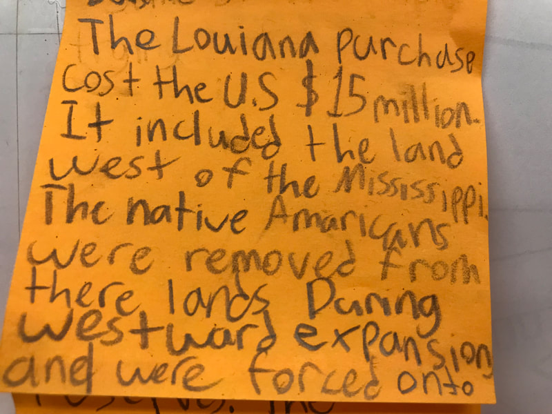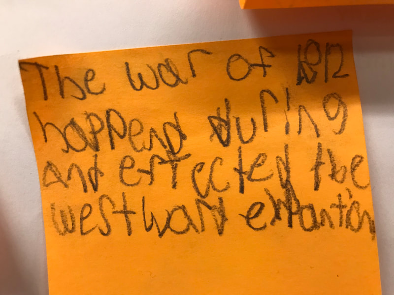 Students were encouraged to spend a mere twenty minutes researching based on one very vague topic: Westward Expansion, and then they were brainstorming as much information as would fit onto a single Post-It note.