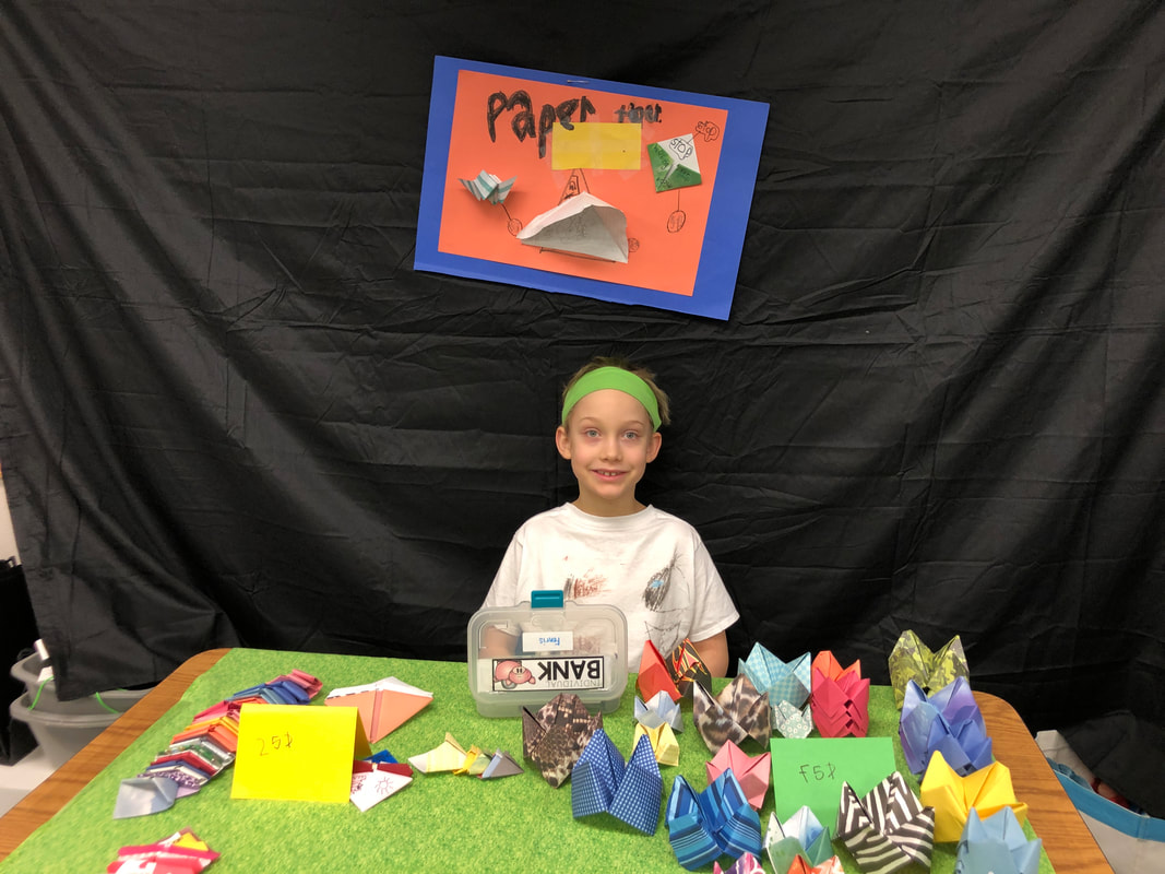 Once the store closes, it is time for cleanup and reflection.  The second graders reflect on what went well: selling and making the product, what was challenging: making enough product, and what their favorite part of the project was; selling to all the people.