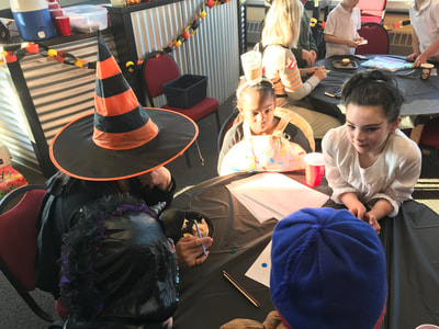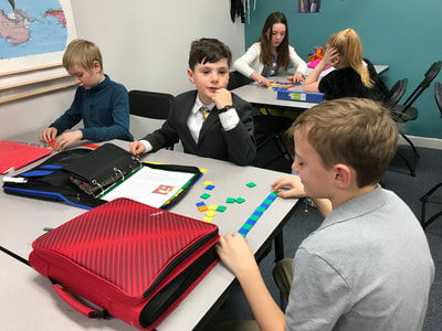 While the lunch just so happened to take place on Halloween, the theme was purely mathematics! Students set up eight different stations around the lobby, each with a different math game that demonstrated a principle from what students have been studying most recently in class. The lunch was a veritable whirlwind of mathematic activity, as you can see in the photos below! Where is your child in the photos below?
