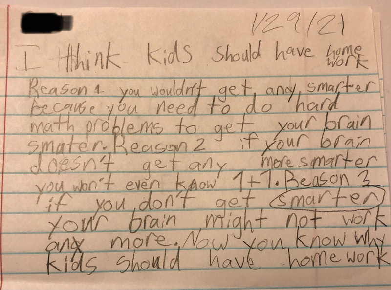 3. Homework can help to reinforce the learning that happens at school through intentional practice. It also helps students to develop good study habits and life skills such as accountability, time management, and goal setting. However it is important to remember that kids are still just that…kids. Alfie Kohn, an education and parenting expert, said, “Kids should have a chance to just be kids and do things they enjoy, particularly after spending six hours a day in school. After all, we adults need time just to chill out; it’s absurd to insist that children must be engaged in constructive activities right up until their heads hit the pillow.” (Strauss, “Opinion: Your Kid Is Right, Homework Is Pointless. Here’s What You Should Do Instead.,” cnn.com, Jan. 28, 2020)