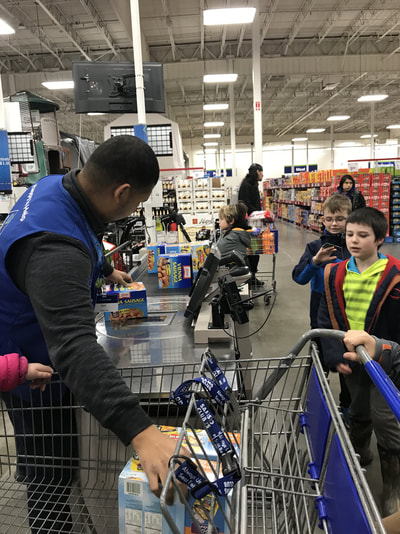 Students went to Sam’s Club to buy non-perishable food they need to add to their project: emergency kits for PNA classrooms. They researched for non-perishable food and then check expiration dates of the food they chose to buy. They learned how to find items at a store, to ask a store representative when they need help, to check out, and to enjoy carrying boxes to the car and back to school. Before they left Sam’s Club, they donated $2 to The Salvation Army.