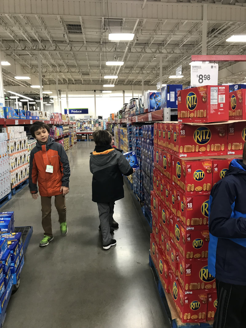 Students went to Sam’s Club to buy non-perishable food they need to add to their project: emergency kits for PNA classrooms. They researched for non-perishable food and then check expiration dates of the food they chose to buy. They learned how to find items at a store, to ask a store representative when they need help, to check out, and to enjoy carrying boxes to the car and back to school. Before they left Sam’s Club, they donated $2 to The Salvation Army.