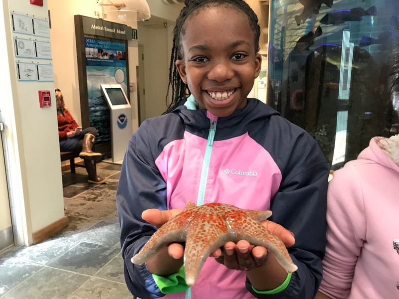 We started the morning off with a hike to the wind turbines on the top of Mount Pillar, and then moved on to the touch tanks at the Kodiak Fishery!