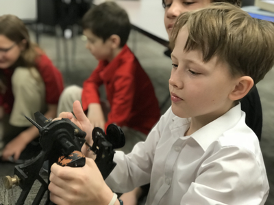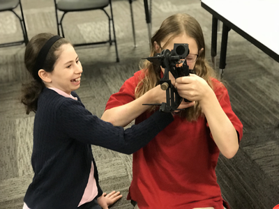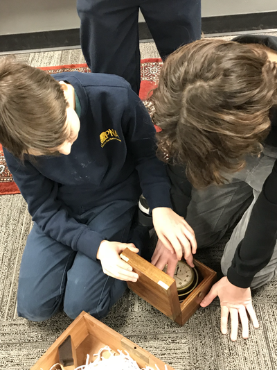 Students were treated to two great guest speakers (that also happen to be parents) this week on the topic of exploration. Our first guest speaker, Paul Fuhs spoke briefly to the students about navigation with a sexton and chronometer.