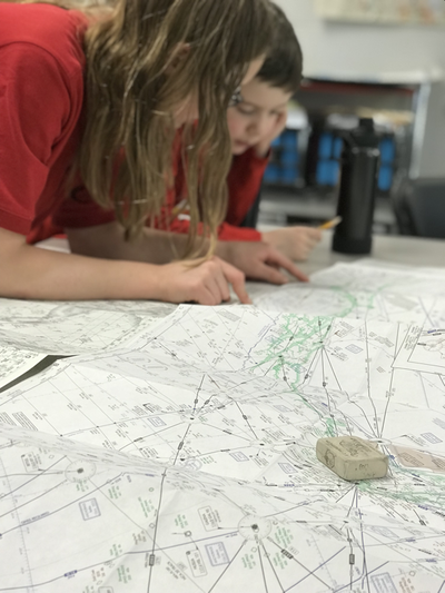 Our second speaker, Lorraine Borys taught an interactive lesson involving maps and secret codes. Students competed in small groups to complete a mission by decoding messages in cypher code and morse code. Students also learned about air navigation and used real airplane navigation charts (donated by Merrill Field) to chart a course to the mission’s destination. Students really enjoyed both presentations. Thanks again to the guest speakers!