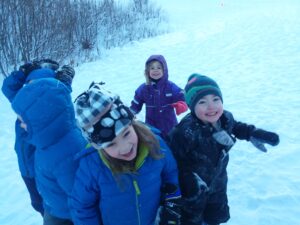 Why is it so important for young children to be immersed in nature? Why go to all the effort to physically touch and explore the natural world? Richard Louv, author of the famous book Last Child in the Woods: Saving Our Children from Nature-Deficit Disorder said that, “Time in nature is not leisure time; it’s an essential investment in our chidlren’s health (and also, by the way, in our own).” He believes that time in nature not only teaches a child to be more observant to the world around them but also ignites their imagination. It allows them to be part of something so much bigger than themselves. They also develope a more robust vocabulary. Nature is calming and teaches so many vital life lessons such as perseverance and healing. Spending time in the natural environment also gives students opportunities to be more physically active. While searching for clues of the animal life on PNA’s campus the students worked hard physically stooping and bending down to look at little mouse holes in the snow, trudging through thigh high snow, and climbing (then sliding down) snow covered hills. The Orca class got great excersise, lots of fresh air, and developed more curiosity and love for the animals that live all around us.