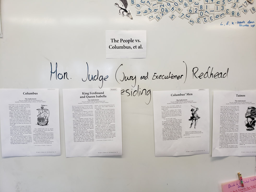 During our studies we did indeed discover there are always 2 (or more) sides to every story. One story, that is perhaps not as well know as Columbus’s is that of the Tainos. The native people of the land Columbus ‘discovered’. As he was not even the first person to sail from Europe and ‘discover’ land that would later be named The Americas. The treatment of the Tainos by Columbus and his brother led to the eventual investigation and imprisonment of Columbus, and thus our trial.