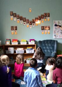 Phonological awareness is an essential part of learning how to read and spell. In our class, we use a sound wall to help students develop their phonemic awareness. A sound wall is a tool that is organized by speech sounds. It focuses on specific sounds and the articulations of each sound. Letter and letter patterns are grouped by sound, not by starting letter. This helps the students identify the letter or set of letters that represent each sound.