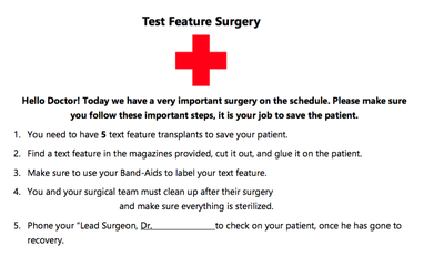 ​First, third grade surgeons reviewed the list of nonfiction text features before they were given instructions on how to perform their surgery.