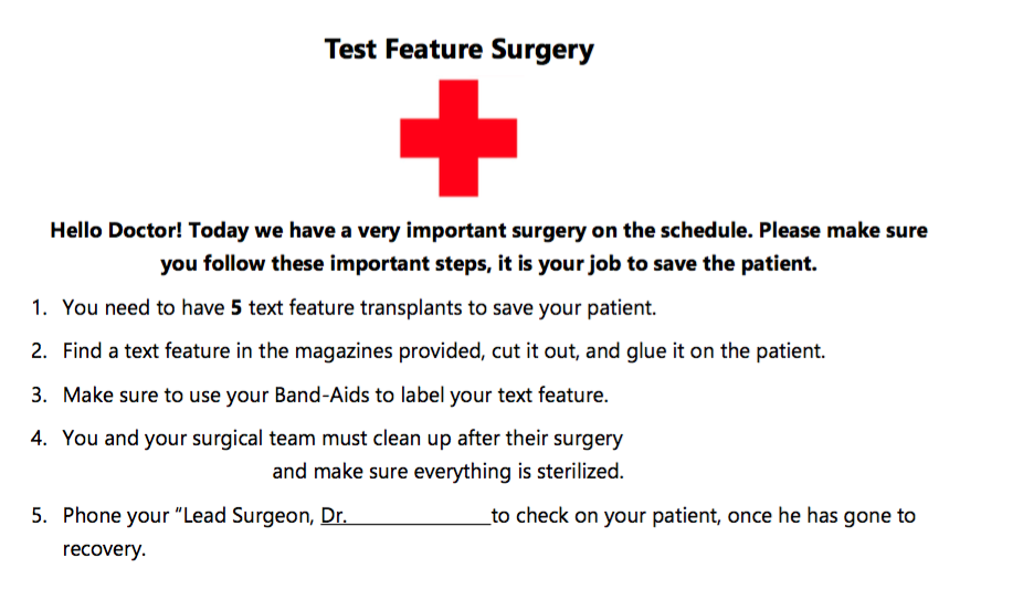 ​First, third grade surgeons reviewed the list of nonfiction text features before they were given instructions on how to perform their surgery.