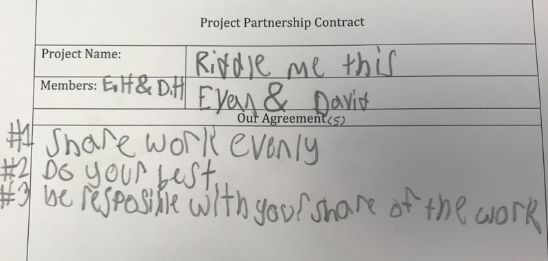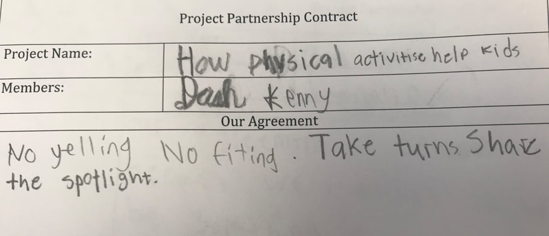​In 4th/5th grade science, students were taught different ways to partner talk, how to agree and disagree politely, and how to compromise. After setting clear expectations, students filled in a contract to record agreements about how they will work together. This partnership contract encourages student ownership and accountability.