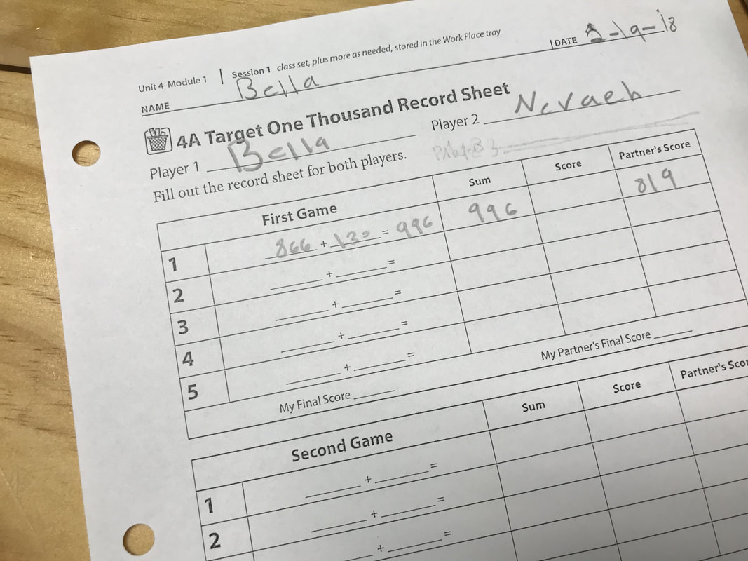 The fourth grade teacher will admit that there’s been a fairly strong focus on the production, as of late, but we have been doing other things in class. In the photos below, students play a game of ‘Target One Thousand’. In the game, each player draws eight cards and then must place them in combinations of three that, when added together, equal as close to one thousand as possible.