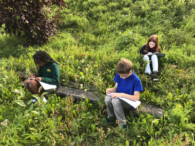 In the photos below, Language Arts students sit outside in the sunshine for maximum inspiration…