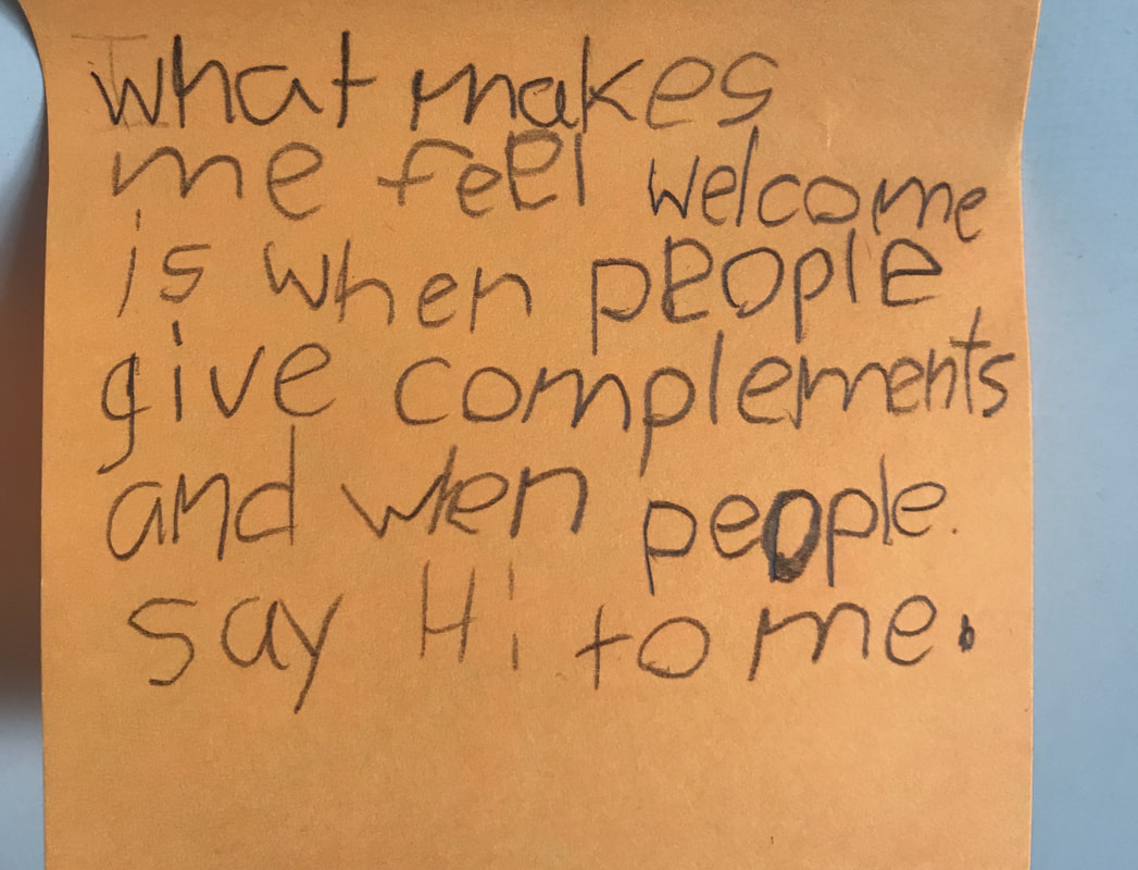 “What makes me feel welcomed is when people give compliments and when people say hi to me.”