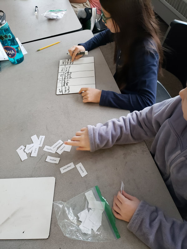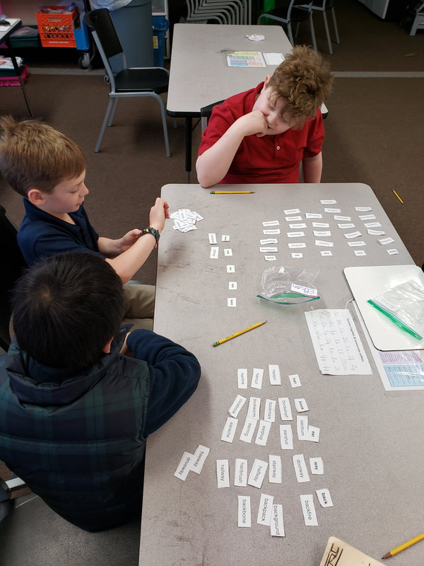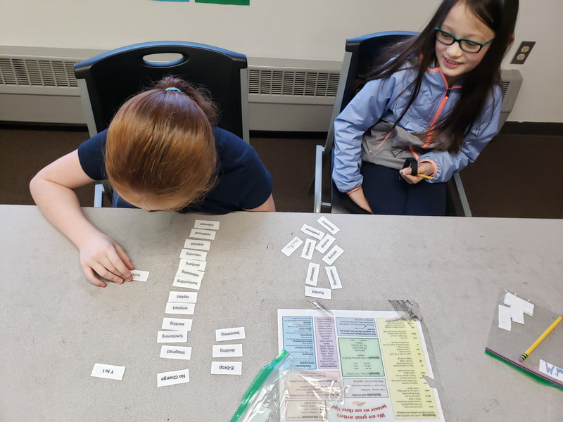 Words Journeys are a differentiated and hands-on approach to our spellings and language studies.  Throughout the week, the students engage in different types of games, activities and sorts to learn new word spellings and patterns. To understand and practice the spelling patterns. Then recognize and use them in the correct context.  The benefit to this approach is that students are learning patterns instead of memorizing isolated words. So that in the future when they come across an unknown word. They can successfully decode and read the word by understanding its patterns.